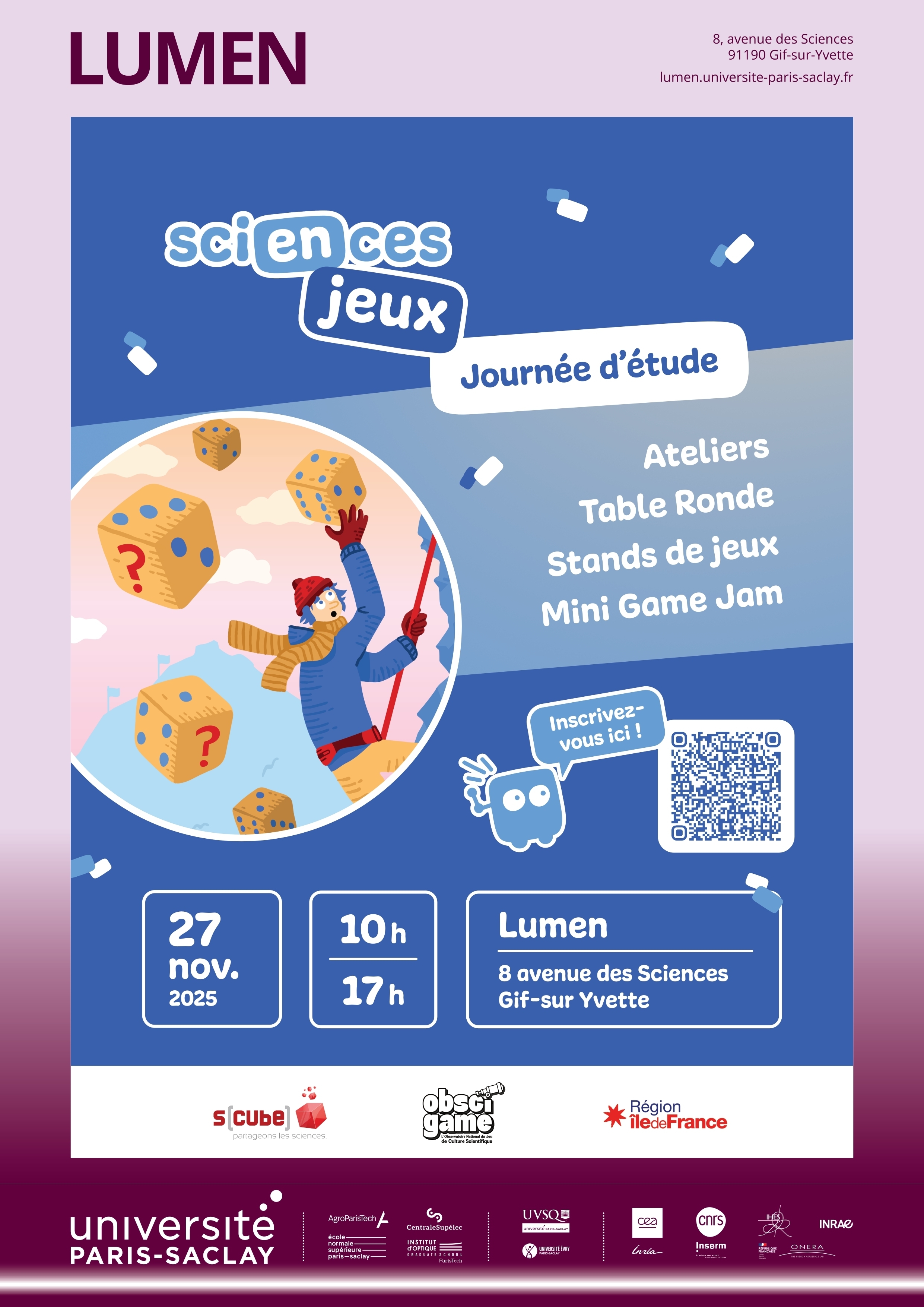 L'Université Paris-Saclay, en partenariat avec l'association S[Cube] et Obscigame, organise le 27 novembre prochain une journée d'étude "Sciences en jeux" au Lumen, lieu d'études, de culture et d'innovation.